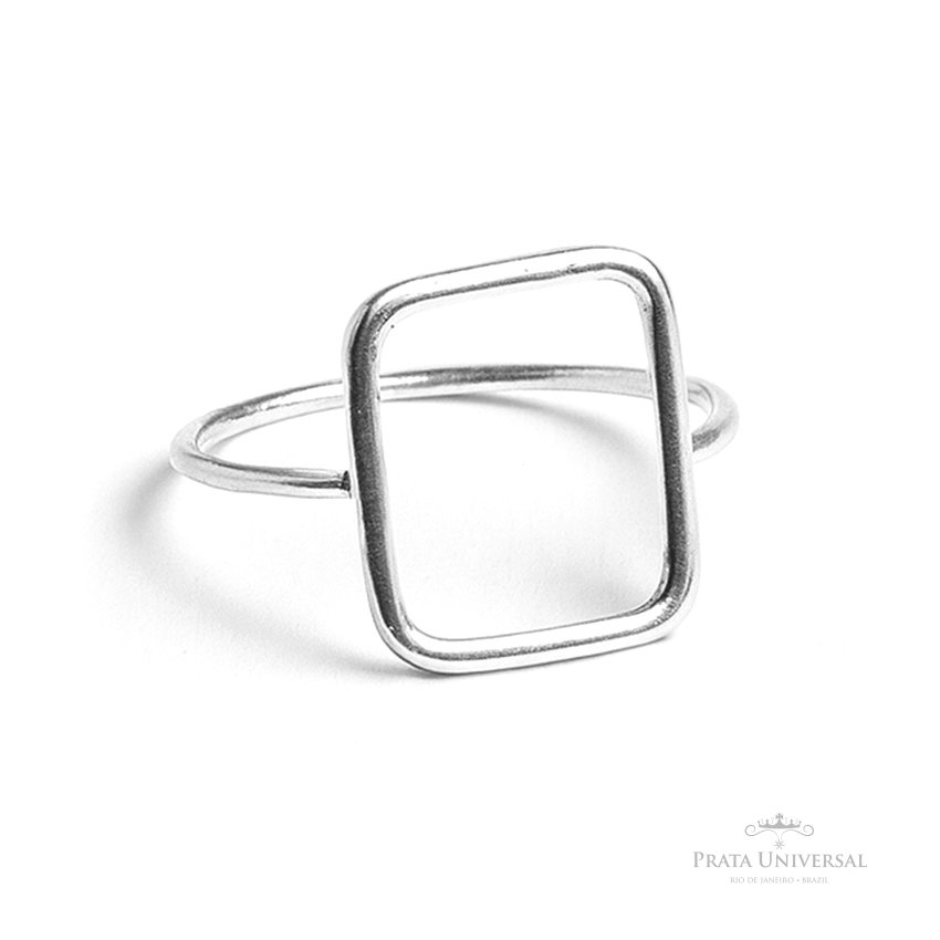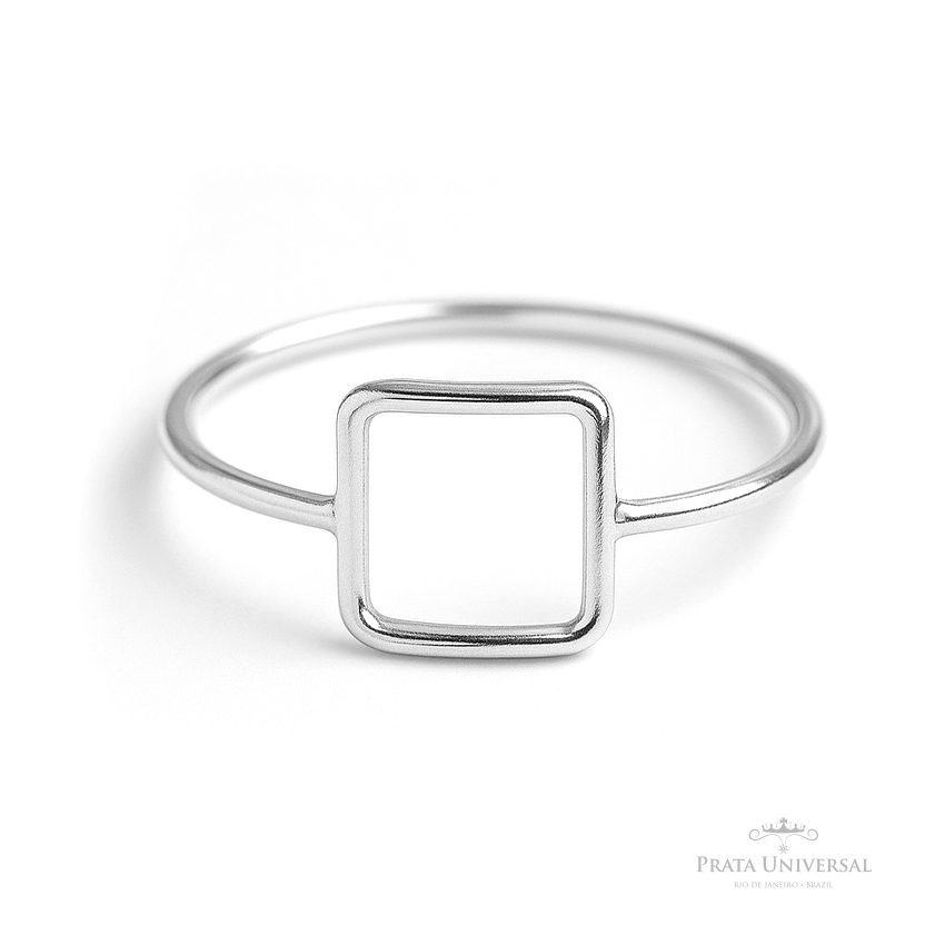 Anel Quadrado Vazado com as medidas 1.0 cm x 1.0 cm em prata.