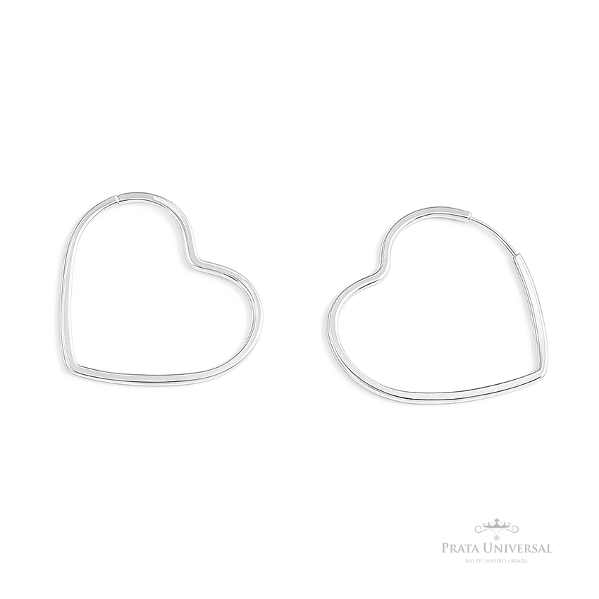 Argola Coração de Lado N3, Fio Quadrado, medindo 2.5 cm de diâmetro em prata.