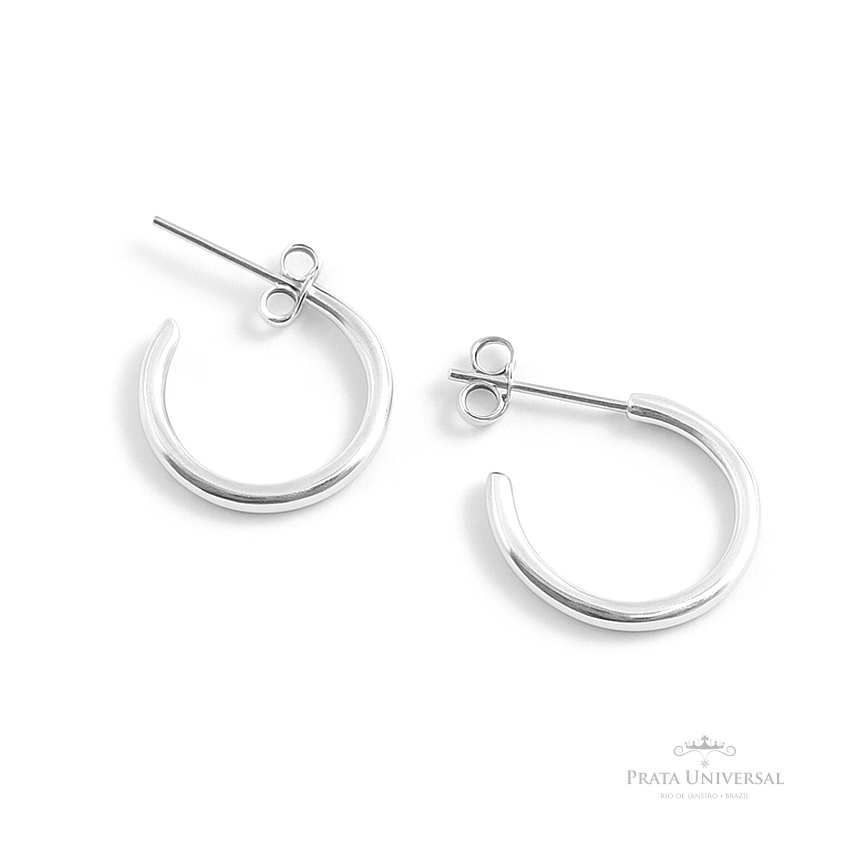Argola, Fio Meia Cana, número 2, com tarraxa medindo 1.2 cm de diâmetro em prata.