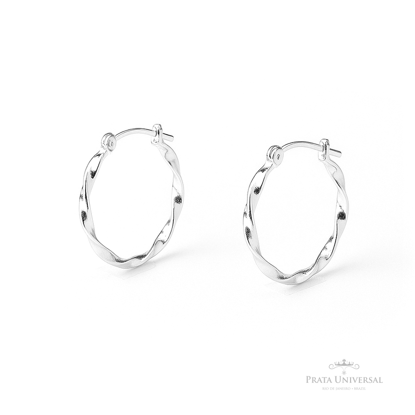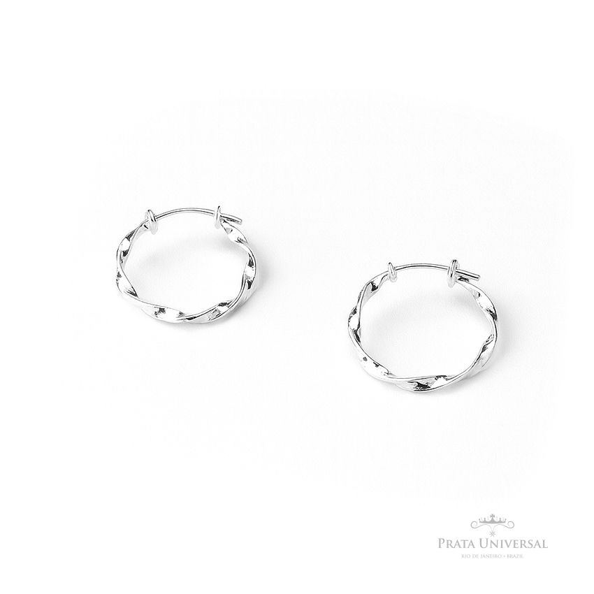 Argola, Fio Torcido, número 3, medindo 1.5 cm de diâmetro em prata.