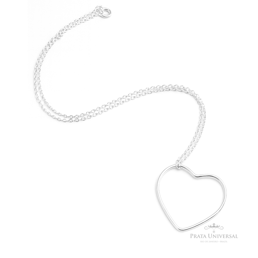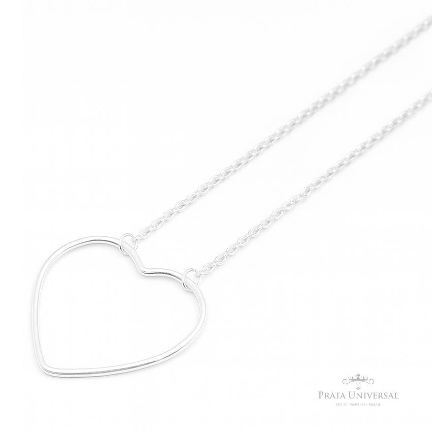 Colar Coração Único Vazado Prata