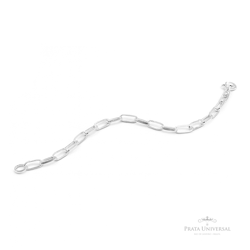 Pulseira Cadeado, com 18 cm de comprimento em prata.